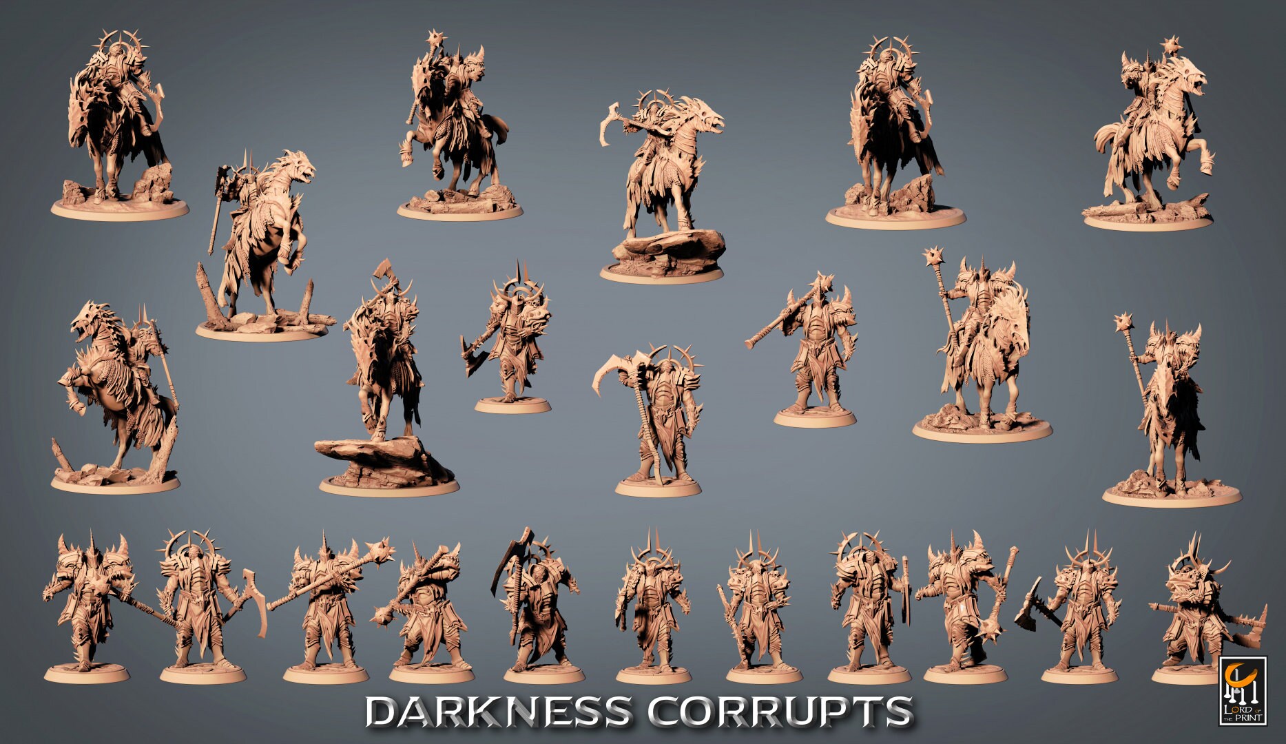 These miniatures are printed using Elegoo gray resin at a vertical resolution of .05mm and an 8K screen resolution. This makes for a HIgh Level of Detail and a Great painting experience. Also doesn’t shrink as much, requiring less filling and in many cases a perfect fit. I try my best to clean all the supports from models with minimal pits. If a print doesn't meet my standard I will try printing it again.